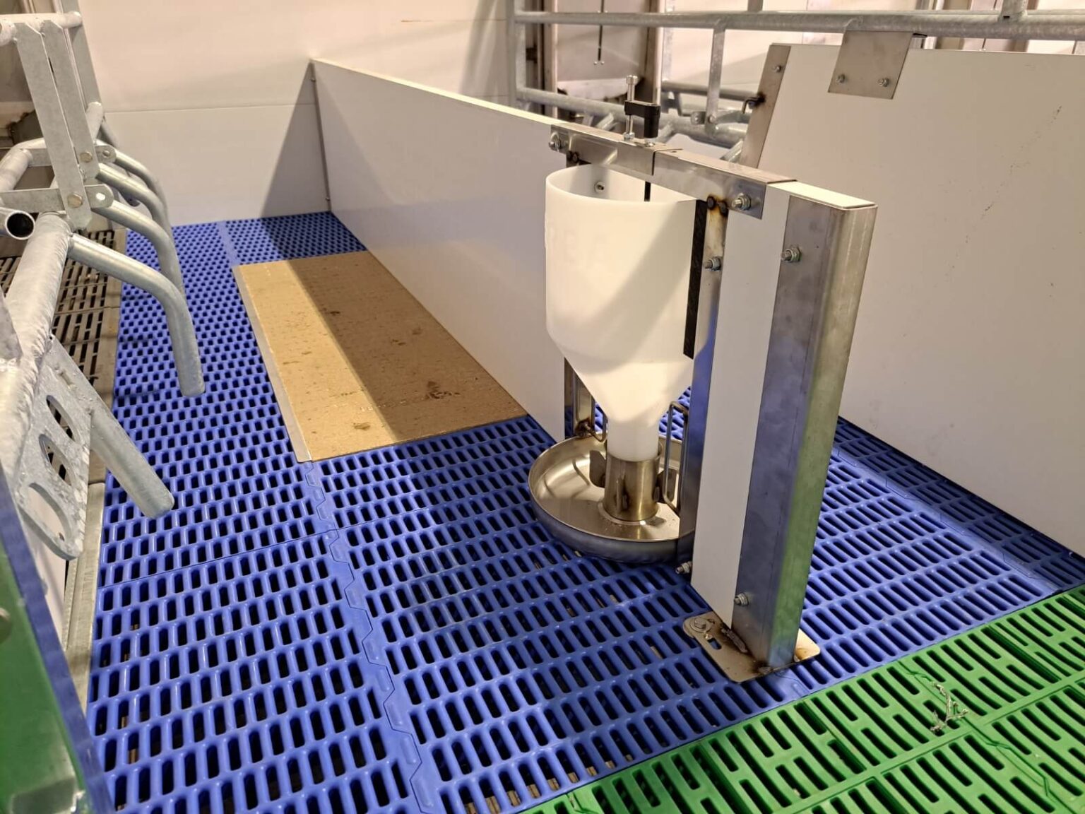 This system can be used as a traditional farrowing crate and as an adaptive farrowing crate. We usually install these crates in a combi setup, positioned head-to-head along the feeding aisle.
